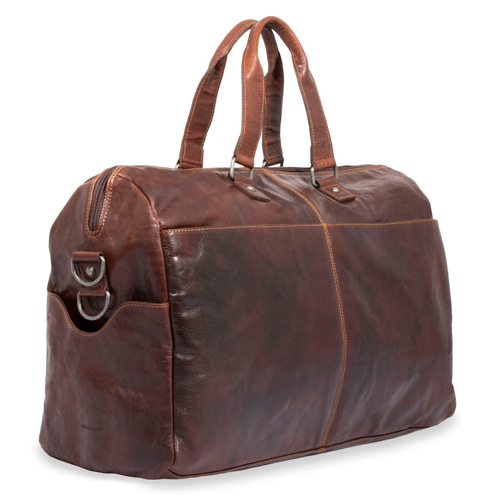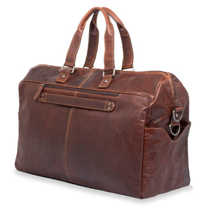 This large 22" Carry-on leather duffle bag has all of the space that you need for a weekend trip or travel across the world. Hand made from hand-stained, full-grain Buffalo hide, the bag has plenty of space for your clothes, shoes, and all of your personal items. Its adjustable/removable shoulder strap makes traveling easier. The large front pockets will accommodate whatever you may need quick access to as you're on the go, including your passport, smartphone, documents, and travel essentials. The bag features: