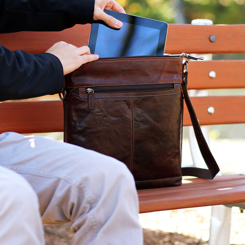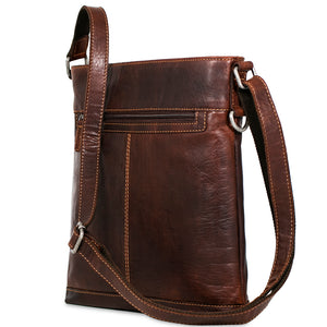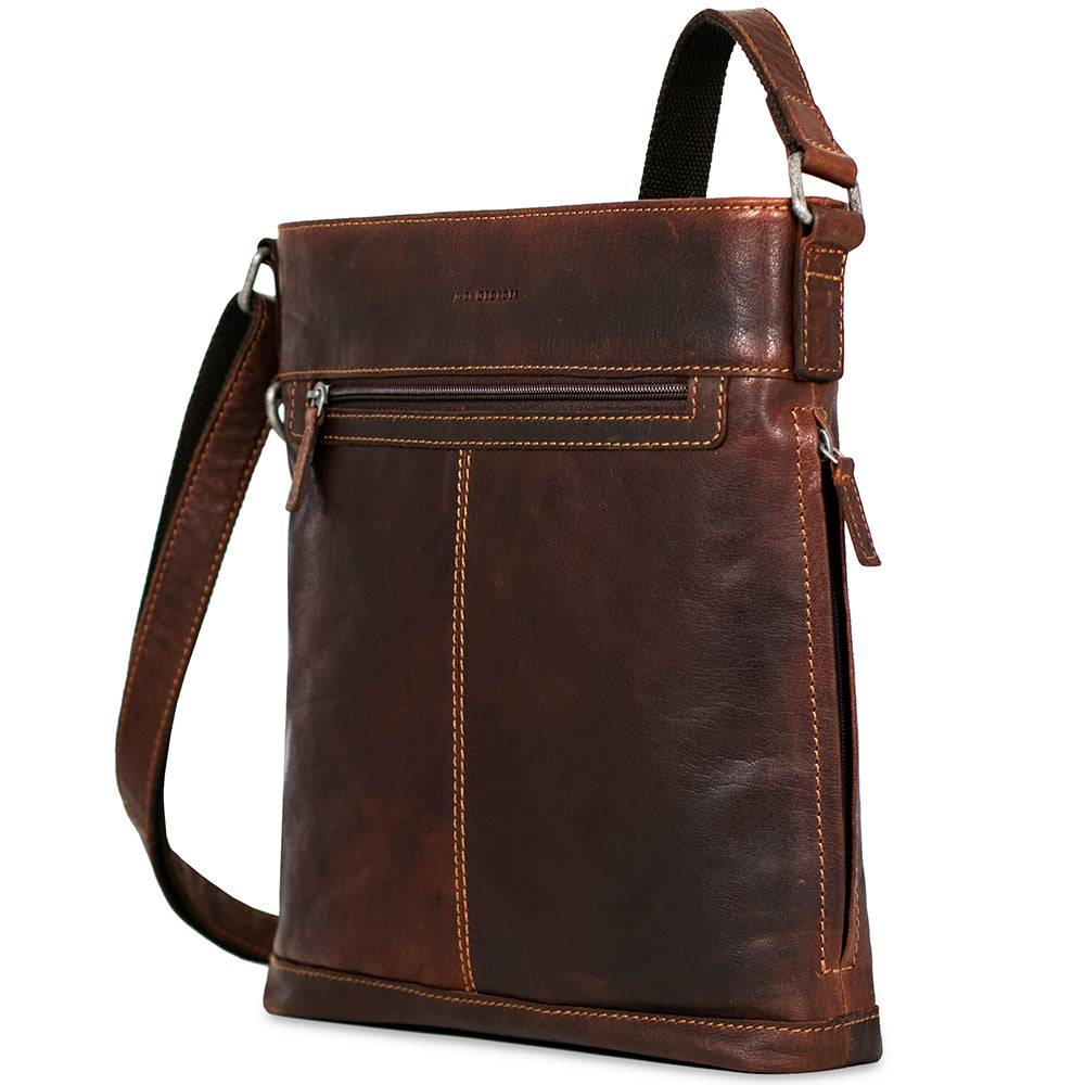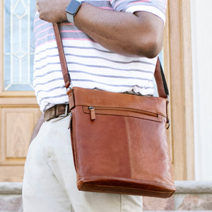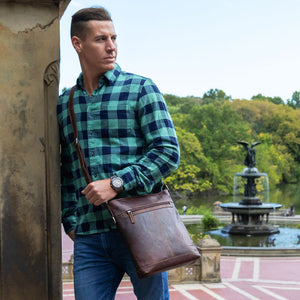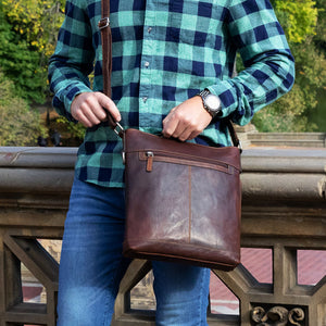This leather crossbody bag is designed to keep your things organized wherever you go. Handmade from full-grain buffalo leather, it offers the perfect blend of form and function. Inside its secure top zip closure, the bag has pockets to keep your essentials organized for a trip to the cafe, a shopping excursion, or travel to the other side of the world. A conceal pocket on the gusset provides easy access to what you might carry inside this leather crossbody bag. Use the D-ring on the side to attach your keys, umbrella, or other items with your carabiner. The outside front and back zippered pockets offer added convenience and can hold your wallet, mobile phone, travel documents, or anything else that you need close at hand. The adjustable leather shoulder strap is versatile and has webbing on the backside for added strength and grip on your shoulder while remaining comfortable to wear. This handmade leather crossbody bag features: