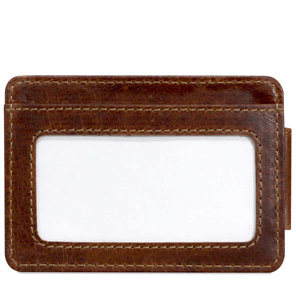 This Voyager leather money clip is perfect when some cash, a few cards, and a photo ID are all that you really need to carry. Made from full-grain buffalo leather that grows in character and beauty as it ages, this small Voyager Wallet features rounded corners to resist breakage, a magnetic money clip, RFID protection, three card pockets to hold your credit, bank, and membership cards, and an ID window for your driver's license, school, or work ID. This hand made leather wallet features: