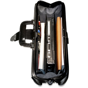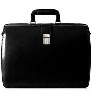 Carry your laptop and business essentials in style with the Elements Classic Leather Briefbag. The bag is handmade from European leather that is known for its strength, durability, and scratch resistance. It has a steel frame top that opens like a clamshell to allow for easy access to everything inside. The center compartment is padded to protect laptops with up to a 15.6" screen. With large triple gusset construction, the bag will comfortably accommodate legal-size files and folders. The comfortable, ergonomic top grip handle supports this classic leather briefbag that has organizer pockets hold your wallet, phone, pens, and accessories. The bag features: